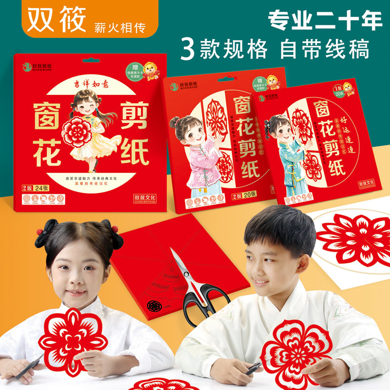 2065年新年切り紙窓飾りDIY子供手作り小学生半完成品型紙模様中国風龍