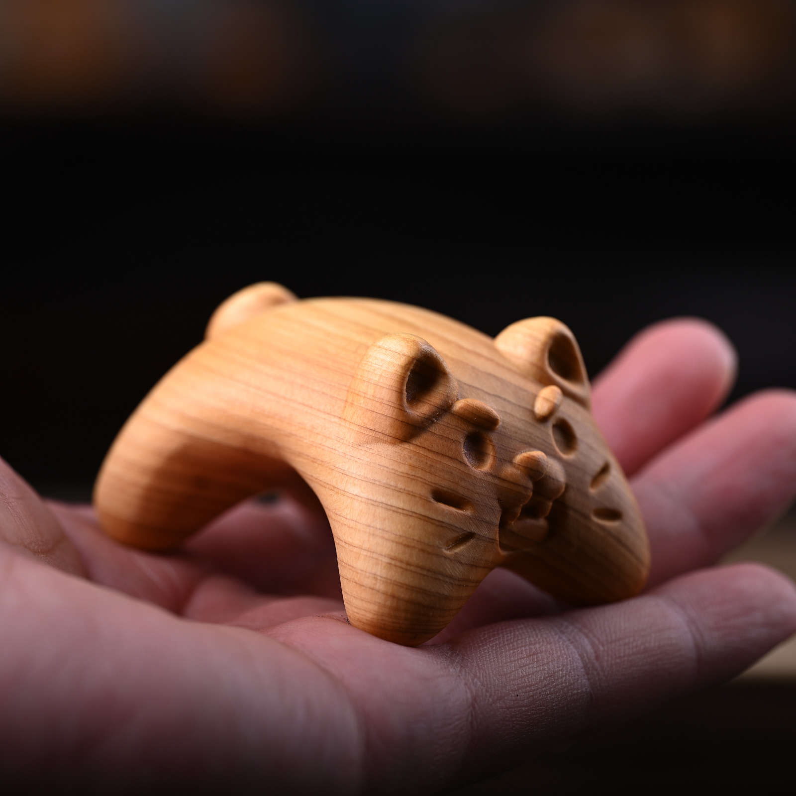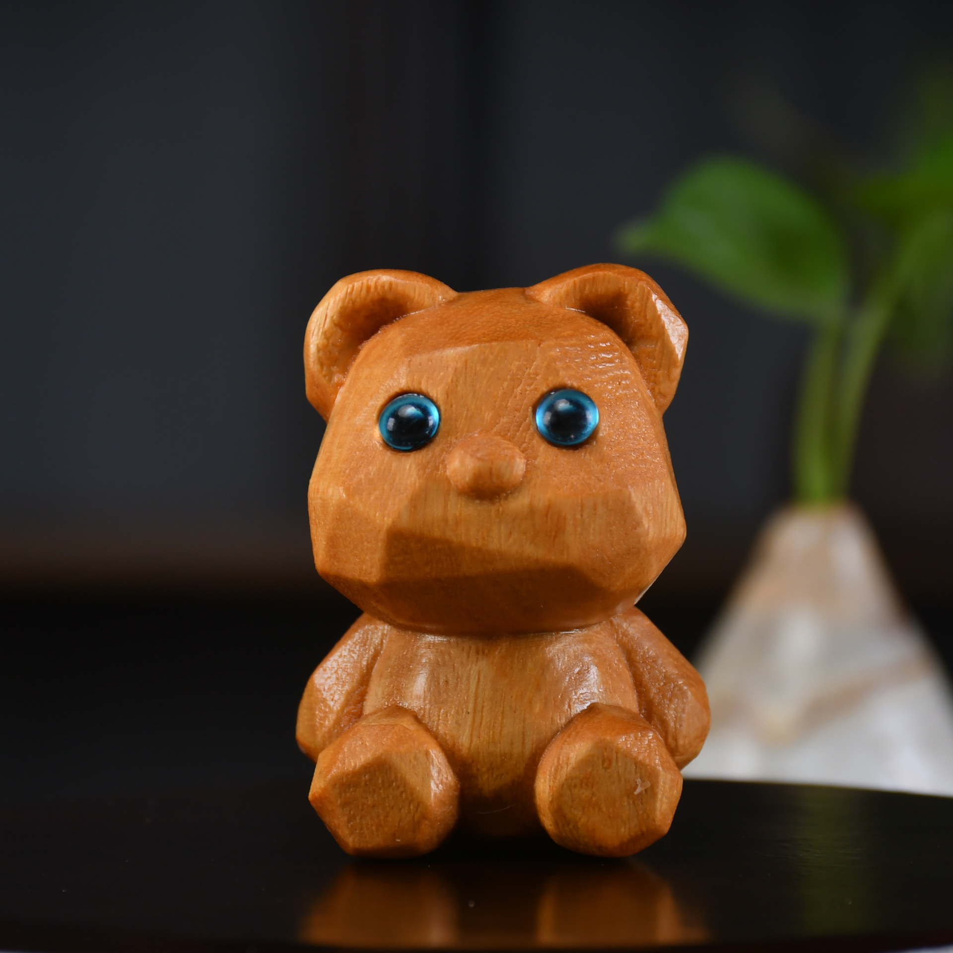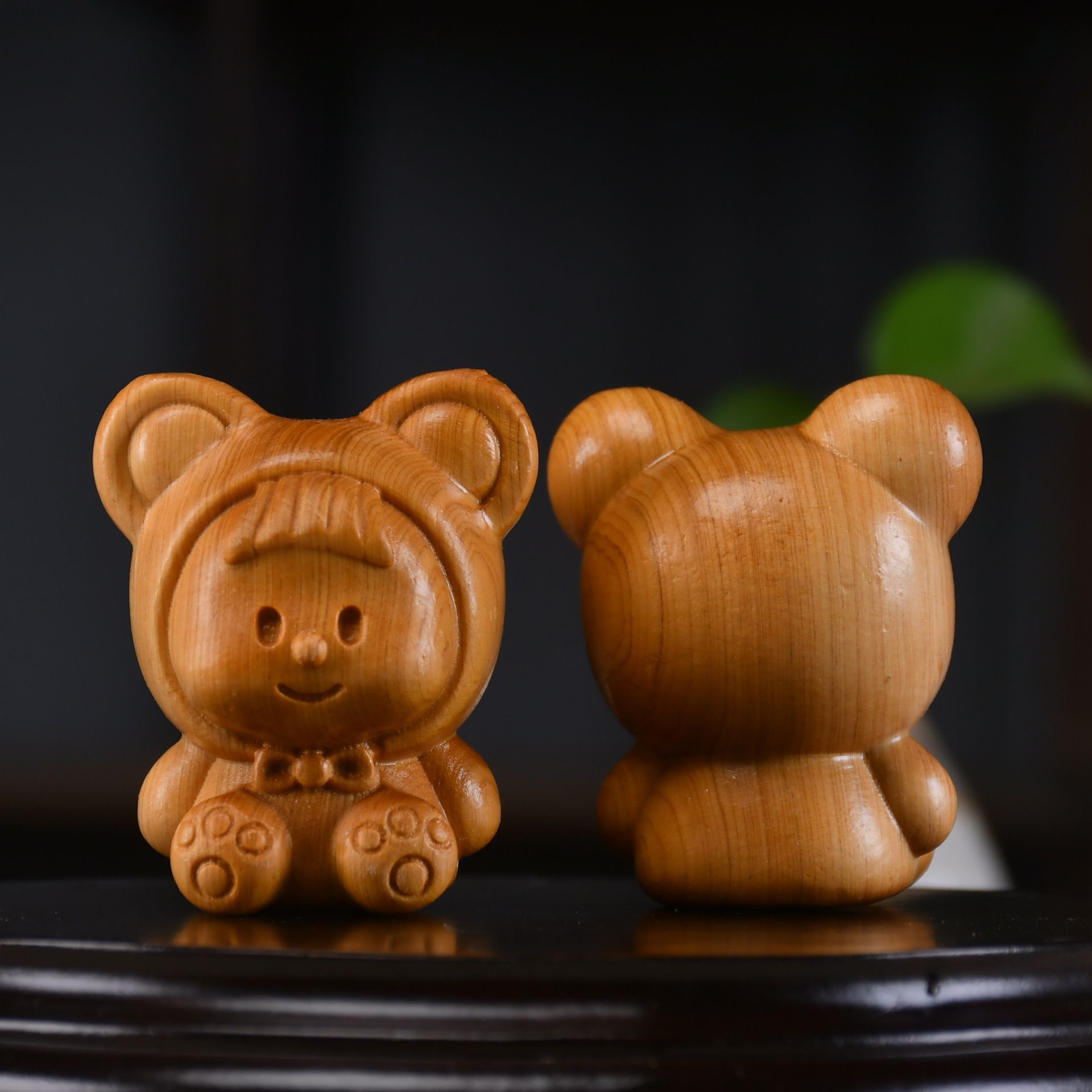 天然崖柏愛心熊創意シンプル実木彫刻ハンドル熊赤ちゃん漫画誕生日プレゼント置物