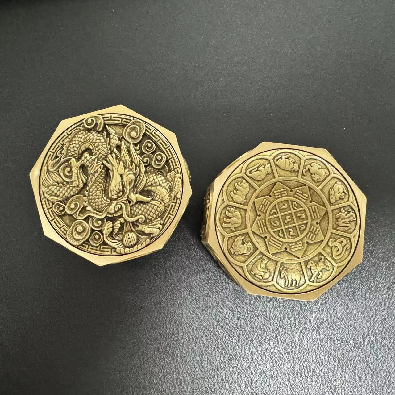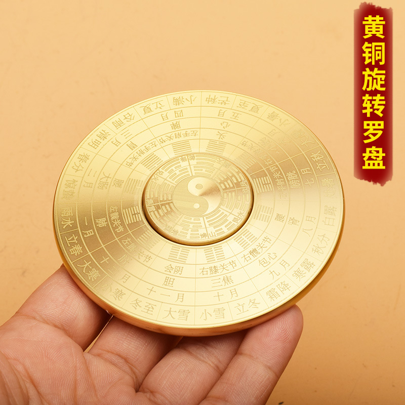 黄銅はコンパスのジャイロのハンドルを回して解凍して工芸品の置物の八卦盤の観光地区の露店の小さい商品を遊びます。