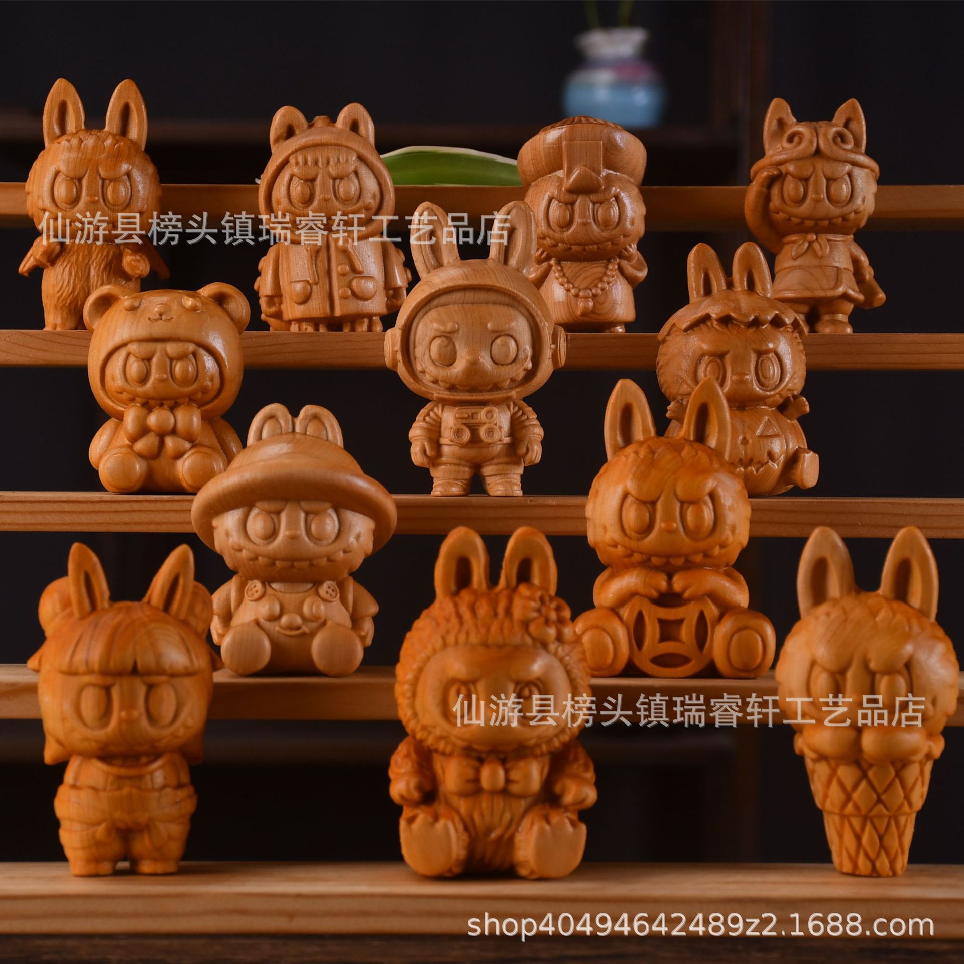 シダーウッドカボチャラブブ木製かわいい漫画人形クリエイティブホーム装飾品景勝地ホット販売工芸品卸売