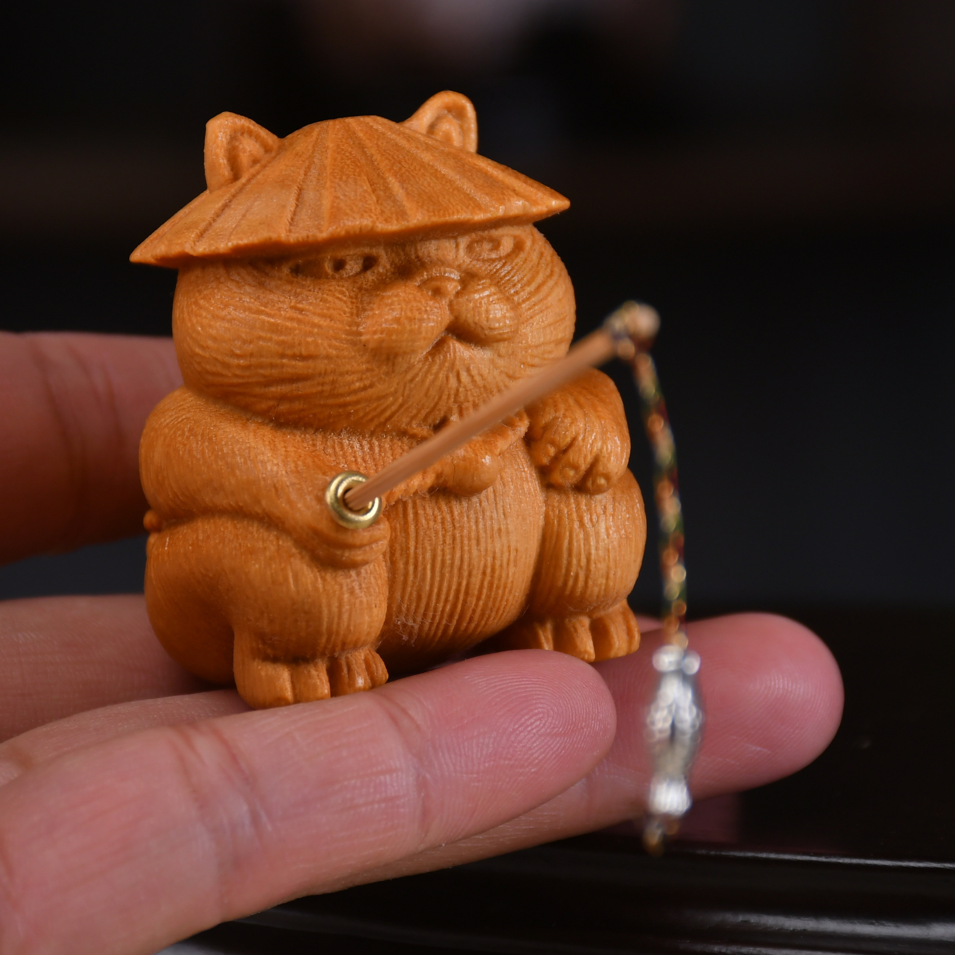 黄金檀の釣り猫の木製の漫画のかわいい茶のペットの人形の漁師の香はアイデアの家のデスクトップの置物の卸売りを挿し込みます。