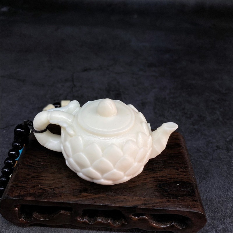 象牙の実は花びらを彫刻して、壺のハンドルを小さい車に並べます。