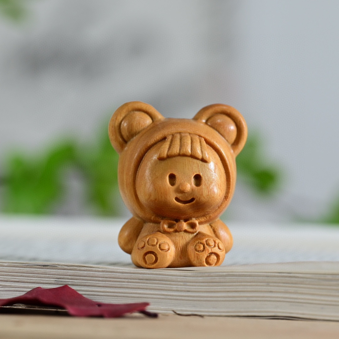 シダーウッド彫刻漫画毛結びクマクリエイティブホーム装飾品かわいいクマの女の子の誕生日ギフトバッグペンダント卸売