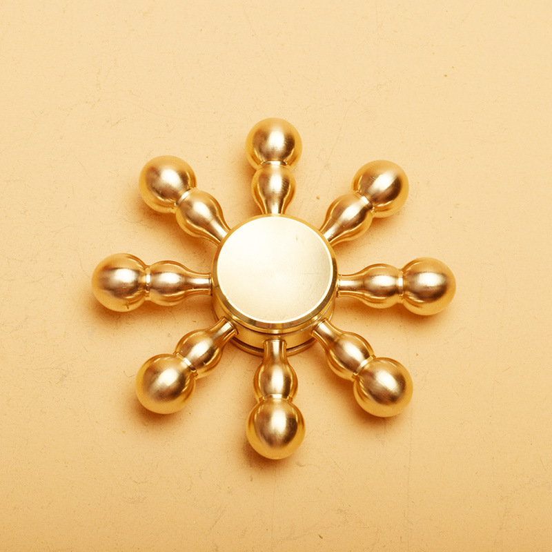 檀木解压神器黄铜八方来财转转陀螺时来运转双面旋转手把件文玩