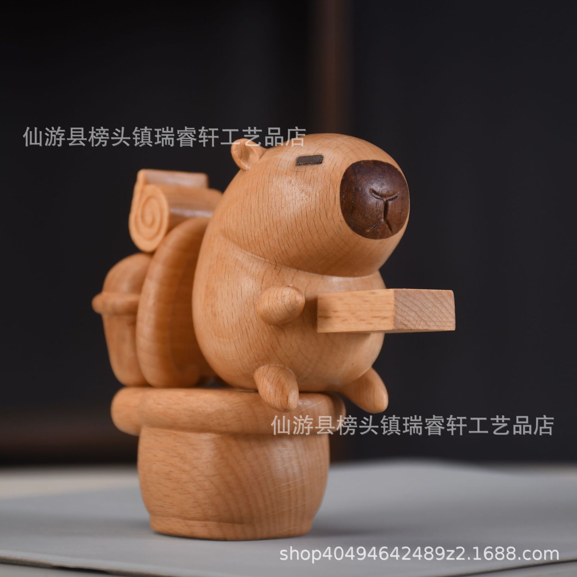 Kapibala トイレ無垢材彫刻磁気吸引かわいいクリエイティブ減圧おもちゃブナ材 iPad 家の装飾品卸売