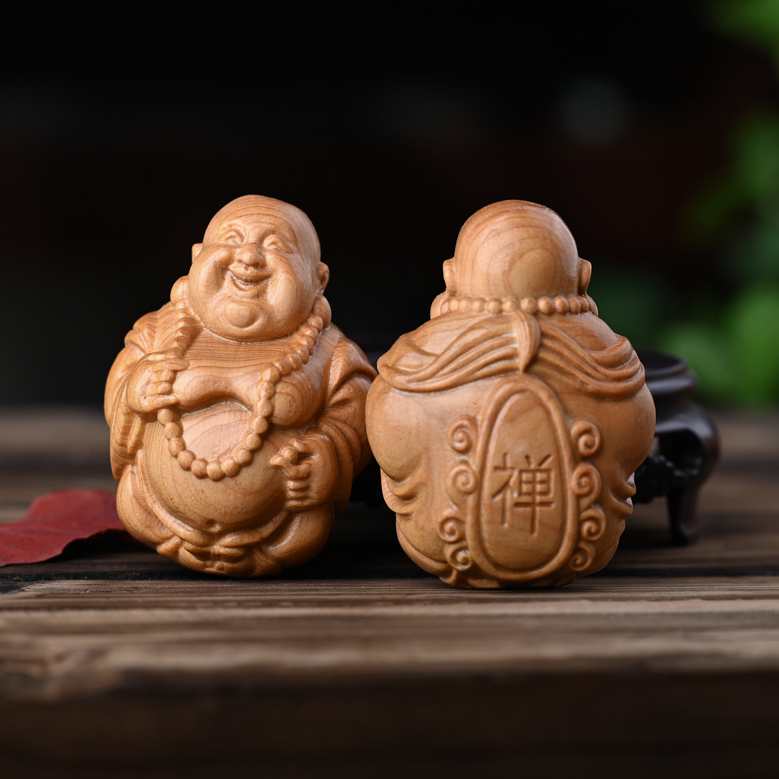 クスノキ木彫り弥勒仏木製文具ハンドピースかわいい漫画人形クリエイティブホームデスクトップ装飾品卸売