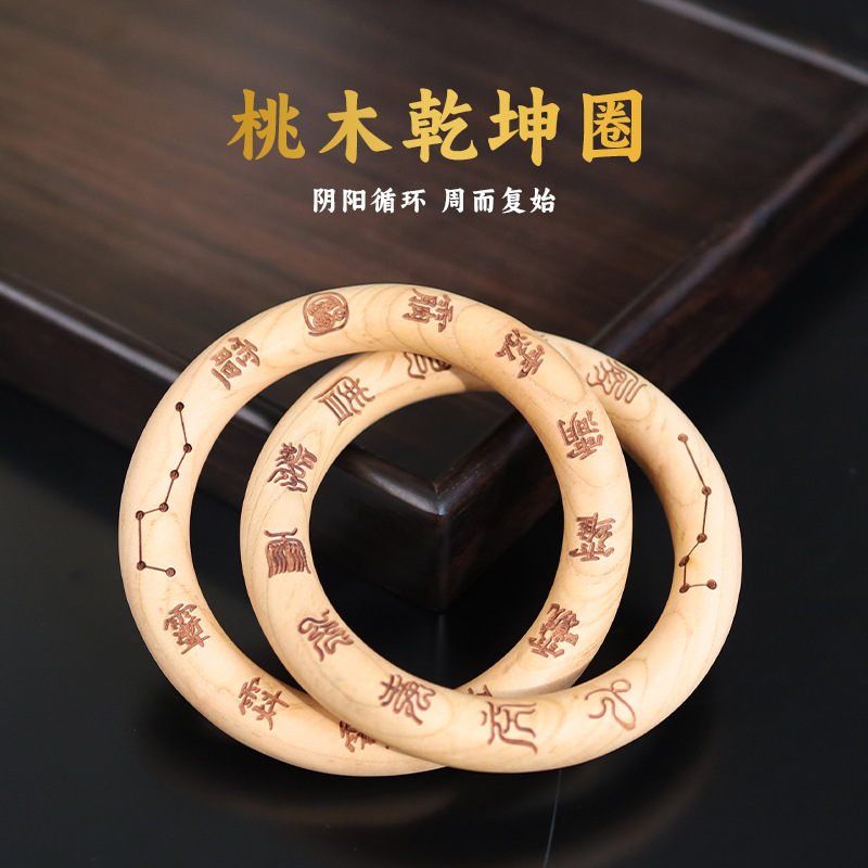 桃の木の天地輪、南斗六北斗七、全木彫り、一体成型、九字真言、十字天経、陰陽輪