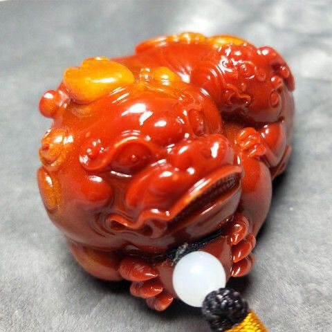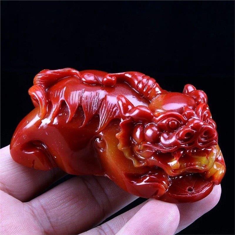 寿山石彫刻鶏血石紅ピシュピストの取っ手はピシュピストの男性の取っ手を持っておもちゃの文を遊んで腰を掛けます。