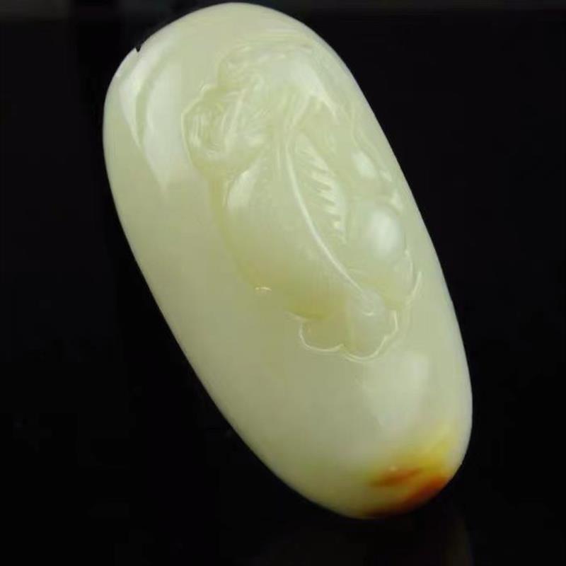 天然の新疆と田玉の青白の実の材料の玉ピシュピストの高級な玉は皮の取っ手の件を持って遊んで卸売りを飾ることができます。