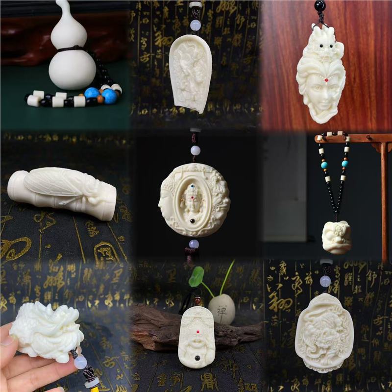 象牙の果物彫刻ひょうたん五鼠集金花ムーラン竹蝉投影観音弥勒貔貅ライオンヘッドハンドル