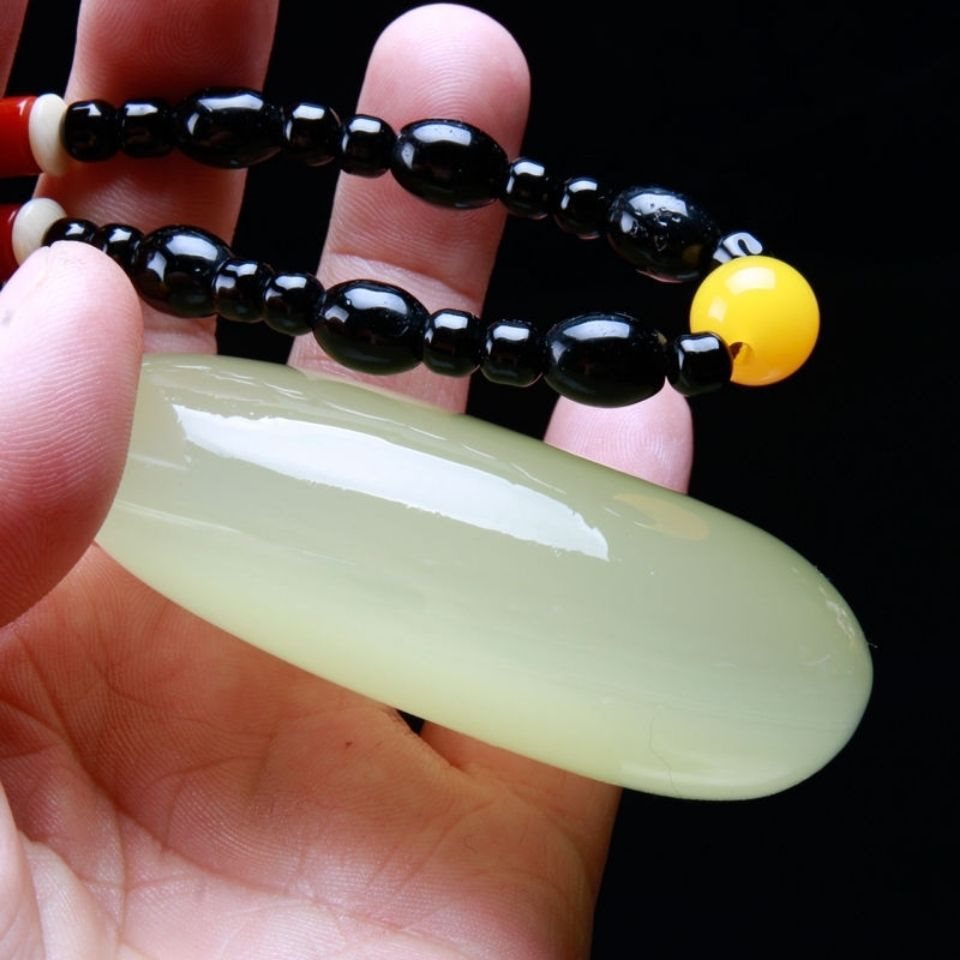 天然アフガニスタンの柔らかい玉原石の取っ手の部品の男女の手は玉の長さの6-8センチを遊んでペンダントを持って卸売りします。