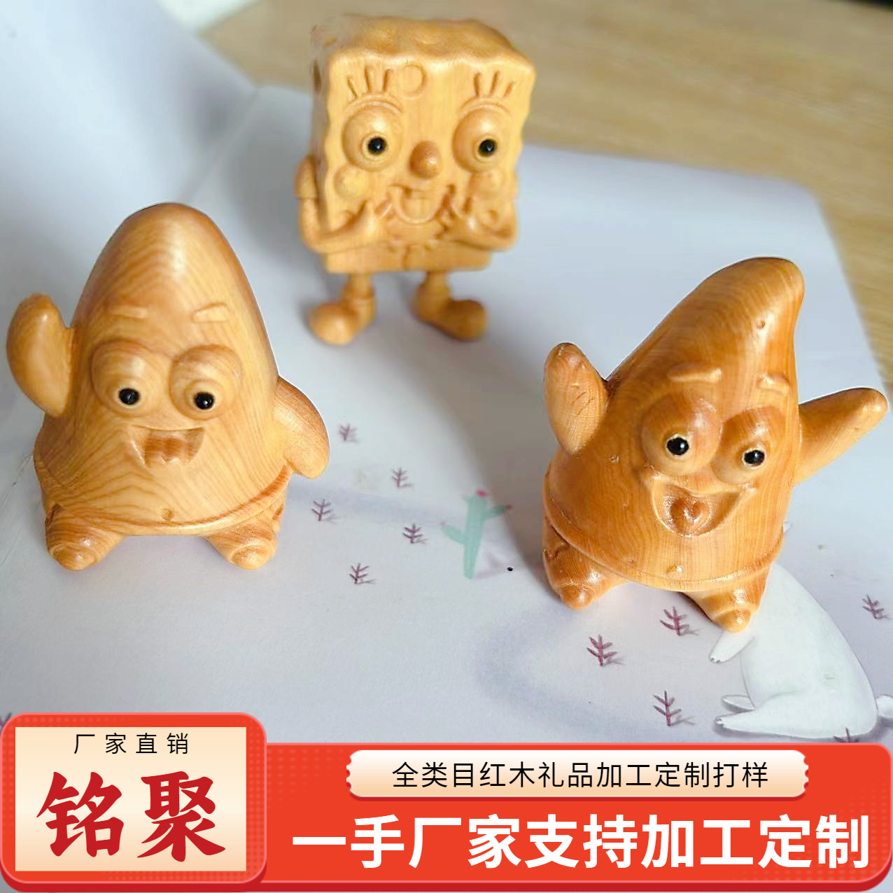 Mingju クコ漫画アニメーションスポンジボブ木彫りハンドピースカニボスオクトパスグレートスター記念フィギュア