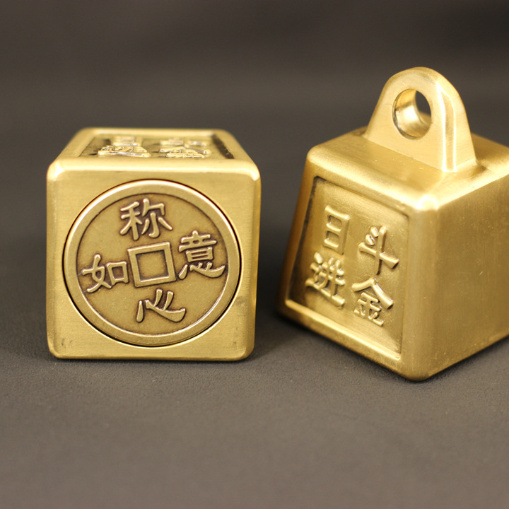 精巧な真鍮+白銅の文具ハンドル、如意計算盤彫刻元宝、如意計算盤