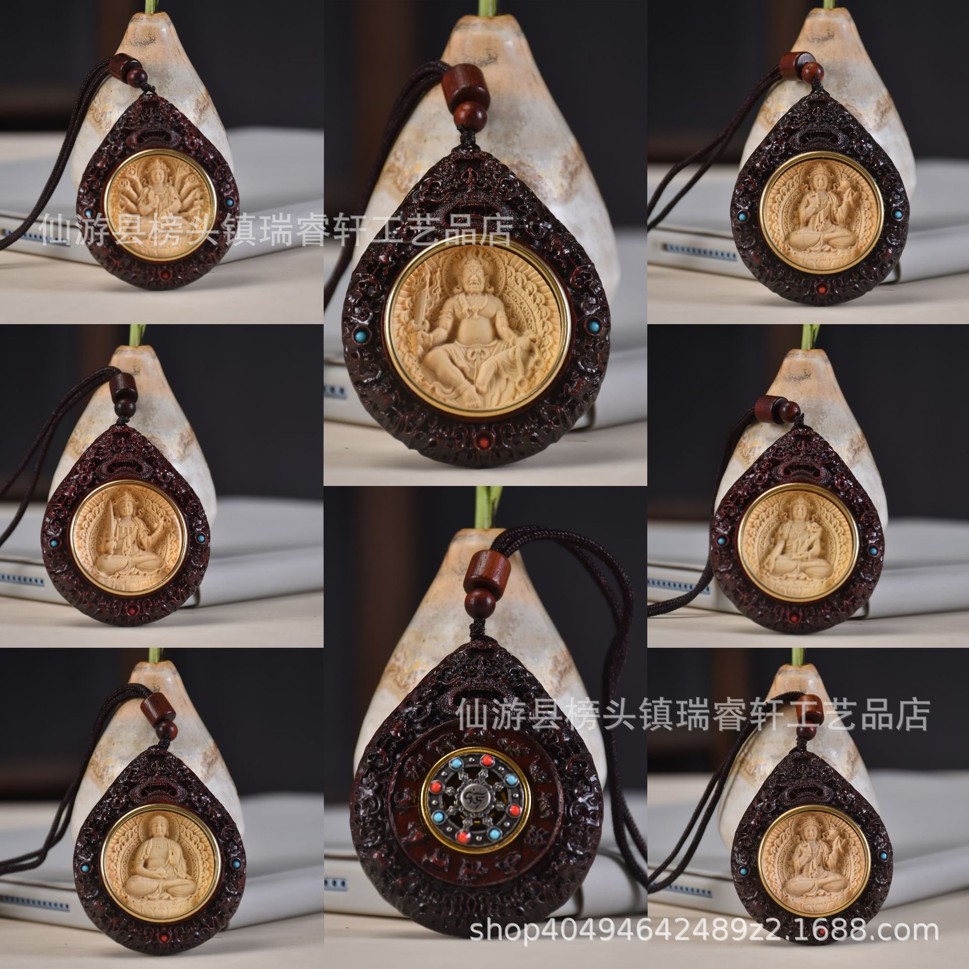 ローズウッドとブナ材の八菩薩守護聖人回転安全ペンダント両面彫刻ペンダント工場直接供給バッチ