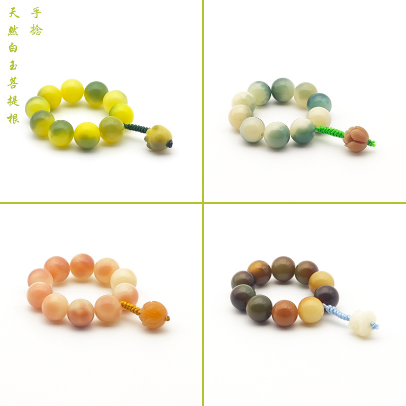 天然白玉菩提根小手捻指柔文游数珠男女学生盤游菩提子アクセサリー