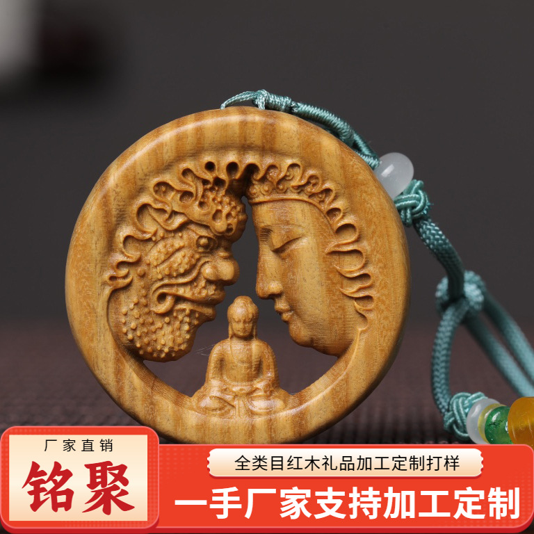 Mingju 緑白檀仏像、一念平安バックル、携帯用ペンダント、ハンドピース、木製文具、ラウンドプレート、車の吊り下げ