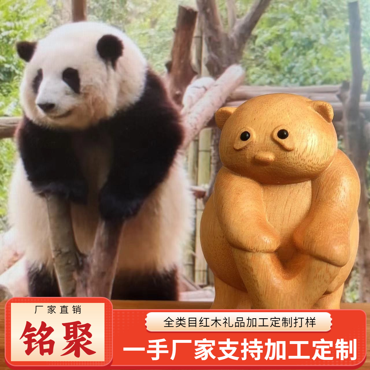 Mingju バクサス木彫りかわいい花無垢材の装飾品オフィスホームデコレーションジャイアントパンダフルーツライウェンおもちゃ