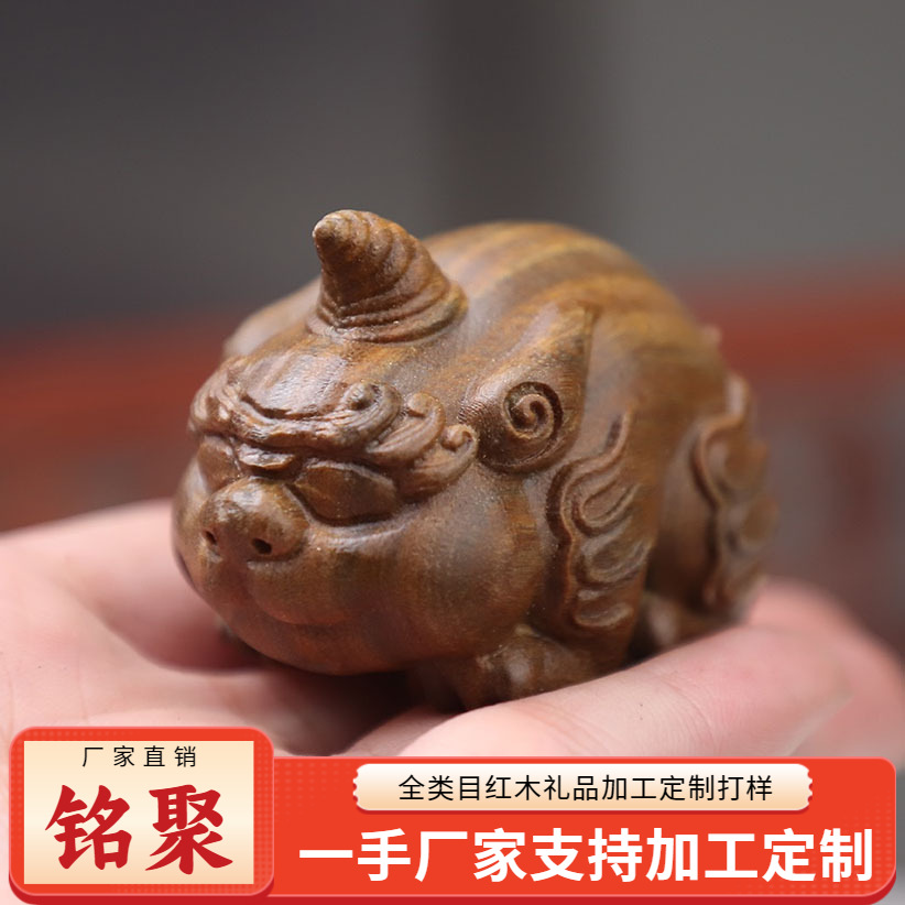 Mingju 緑白檀彫刻ユニコーンハンドヘルドおもちゃ無垢材彫刻職人技神獣男性ポータブル文具ハンドル装飾