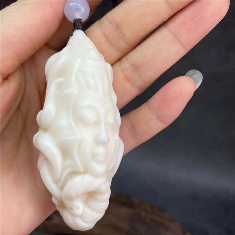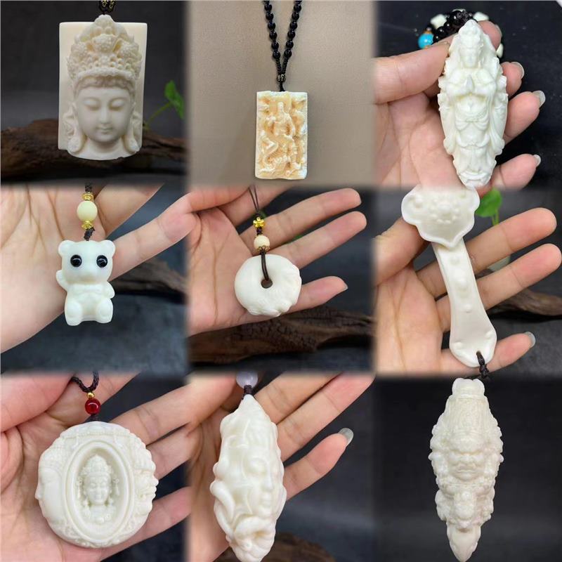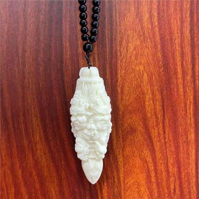 象牙の果物彫刻文殊菩薩ハンドピースペンダントペンダント車の吊り下げ装飾ポータブルプレート工芸品