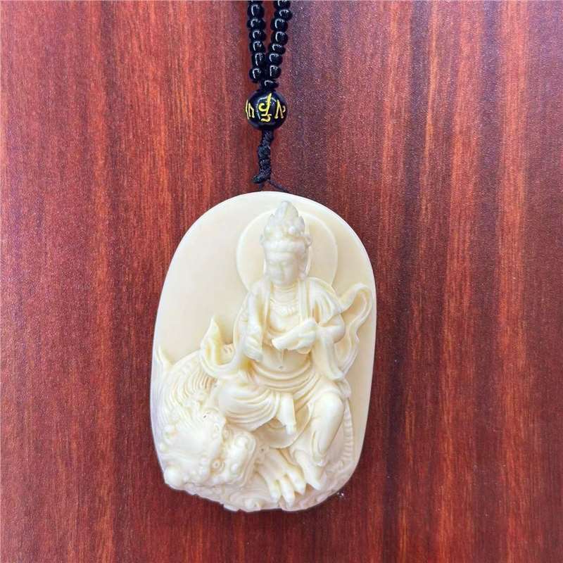 象牙の果物彫刻文殊菩薩 461 タグ観音仏手工芸品車吊りペンダント装飾