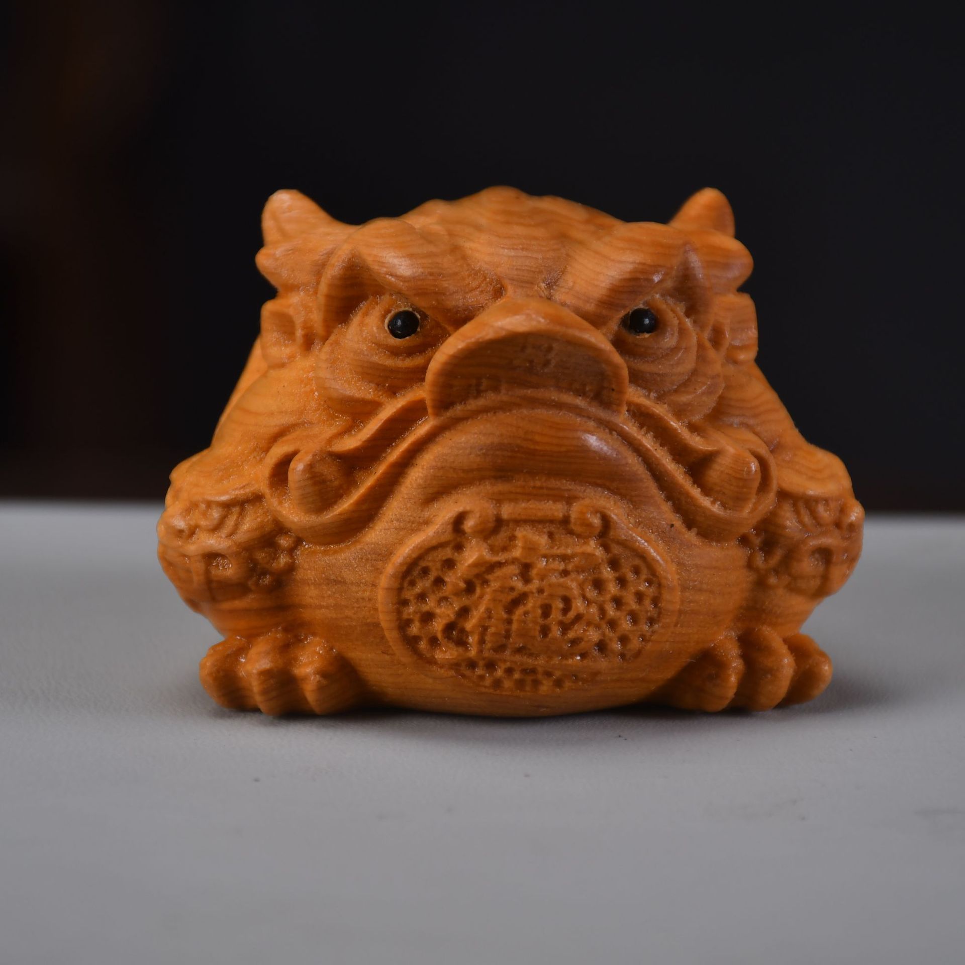 ツゲの木彫りの王様金蟾、三本足の金蟾、男性と女性のための手持ち品、横暴なお茶のペット、家の装飾
