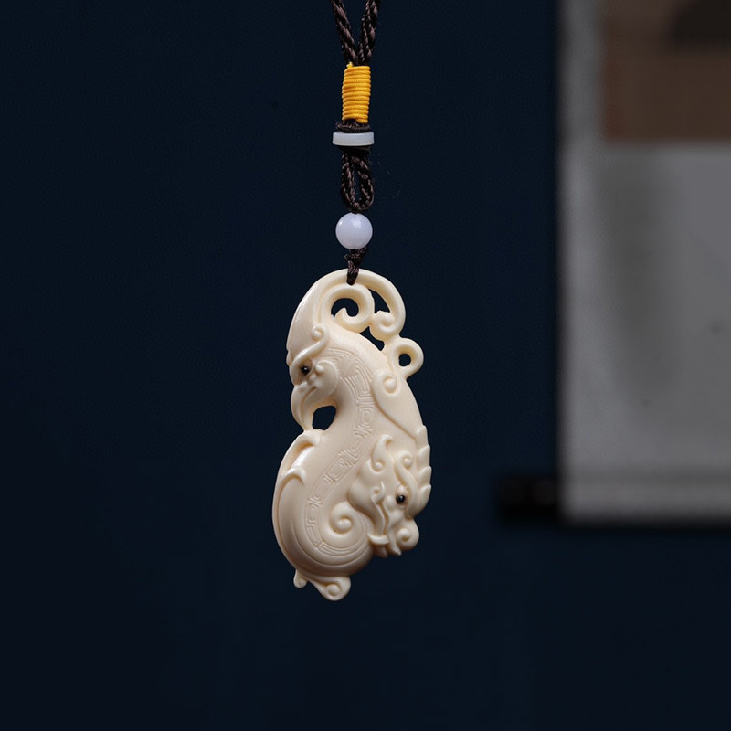 象牙の果実彫刻龍と鳳凰の幸運のペンダント菩提種子木製工芸品ハンドピース車の装飾
