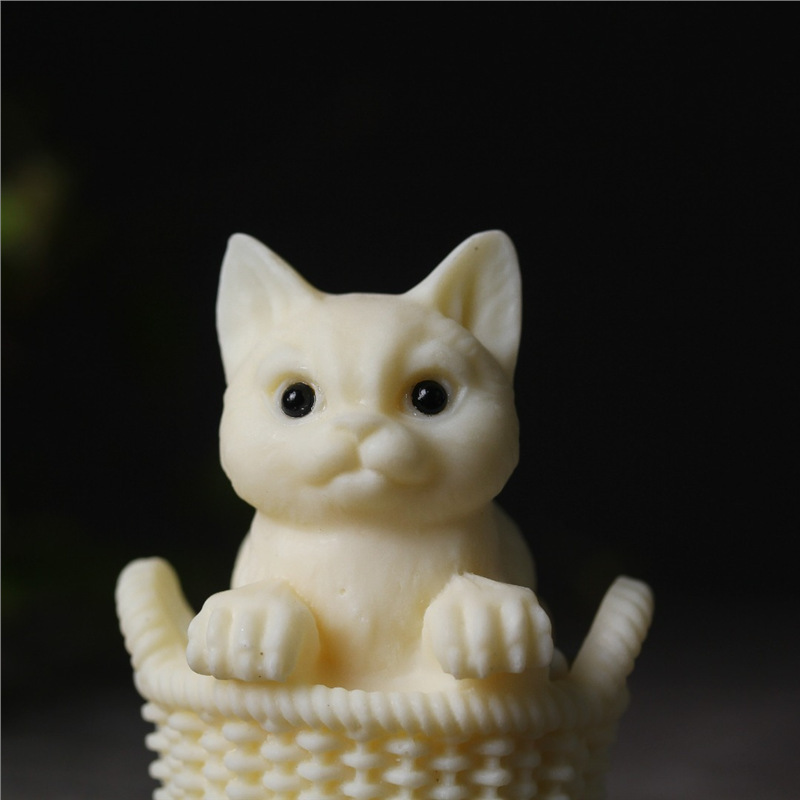 アイボリーフルーツ彫刻子猫手かわいいバスケットかわいい動物赤ちゃん猫茶ペット装飾品装飾工芸品