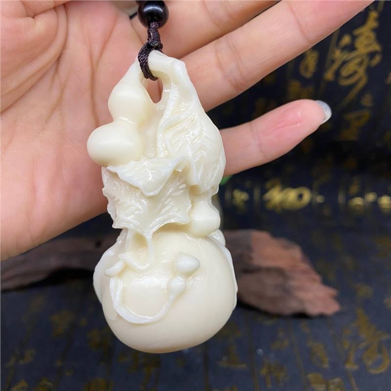 象牙の果物彫刻縁起の良い雲ひょうたん 7*4*4 センチメートル縁起の良い如意安全な出入りタッセル車の装飾ペンダント