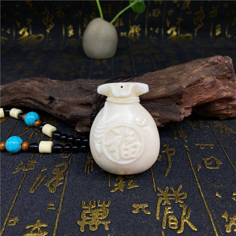 アイボリーフルーツ彫刻ラッキーバッグ 6*4.2*3.2 センチメートルビーズチェーンペンダントプレート文具工芸品ハンドピース
