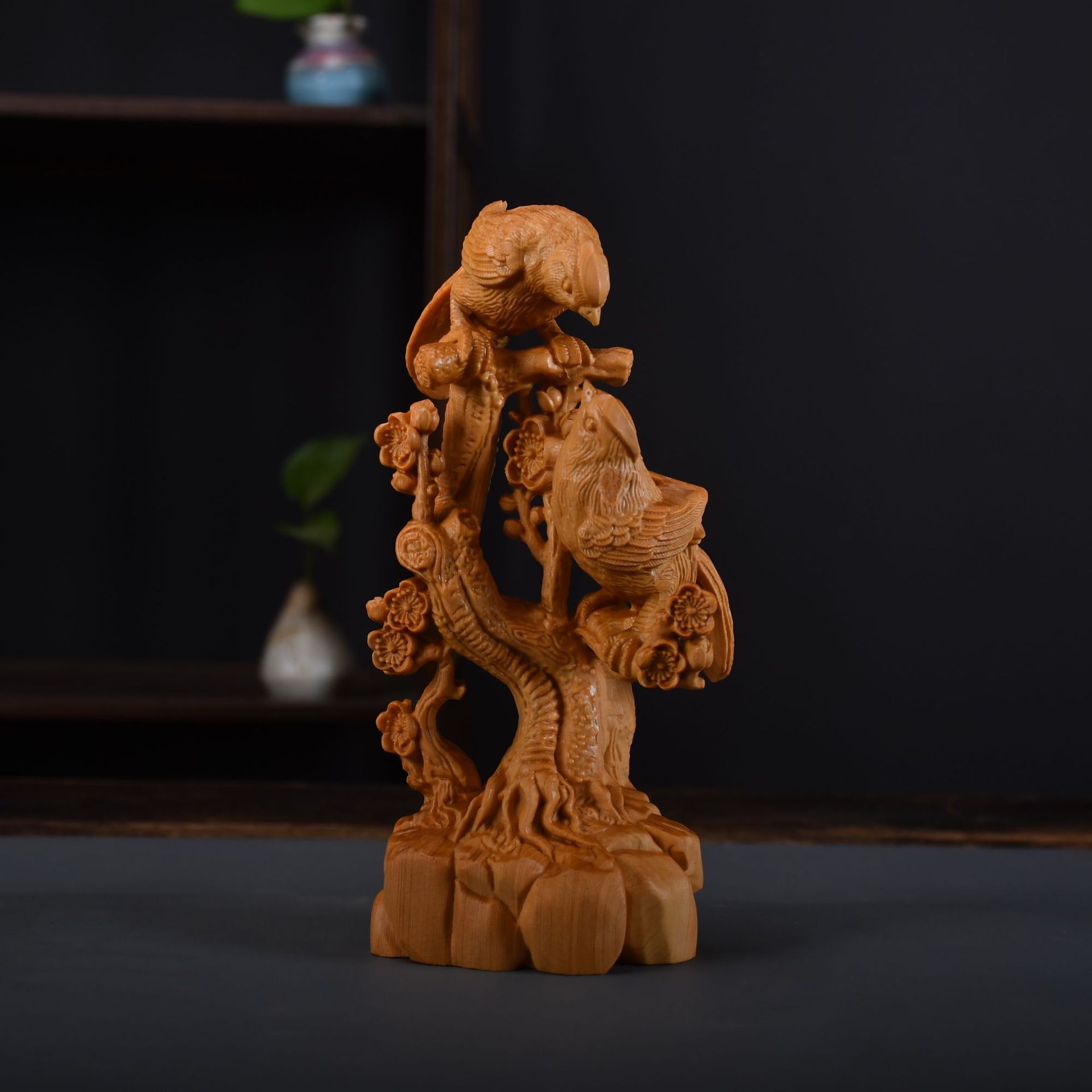 シダの木彫り、中国風の家の装飾品、新築祝いの結婚祝い、ダブルハピネス、カササギの工芸品ギフト