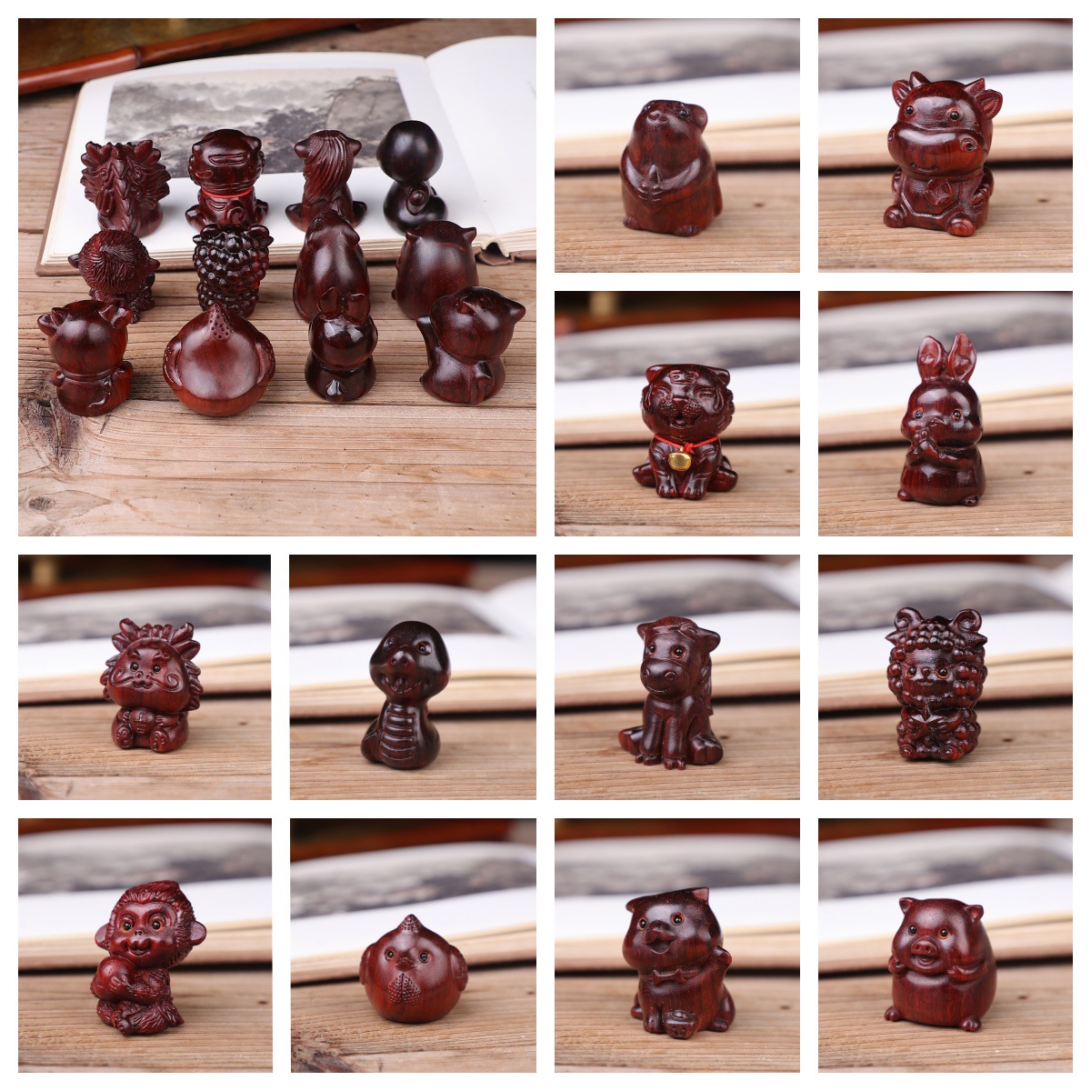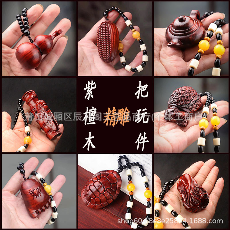 紫檀木の漫画の十二生肖の手の件の木彫りのペンダントの文は工芸品の観光地区の露店を遊んでよく売れています。
