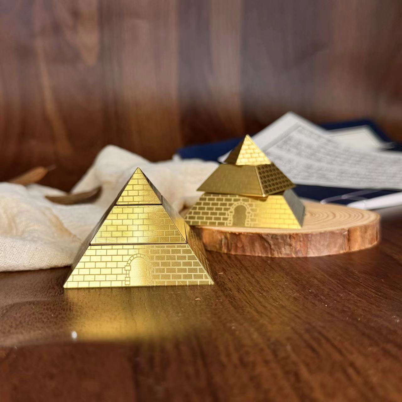 森舎のピラミッドの置物の贈り物の事務室の車のハンドルの件の中実の回転の解凍のジャイロエネルギーの塔