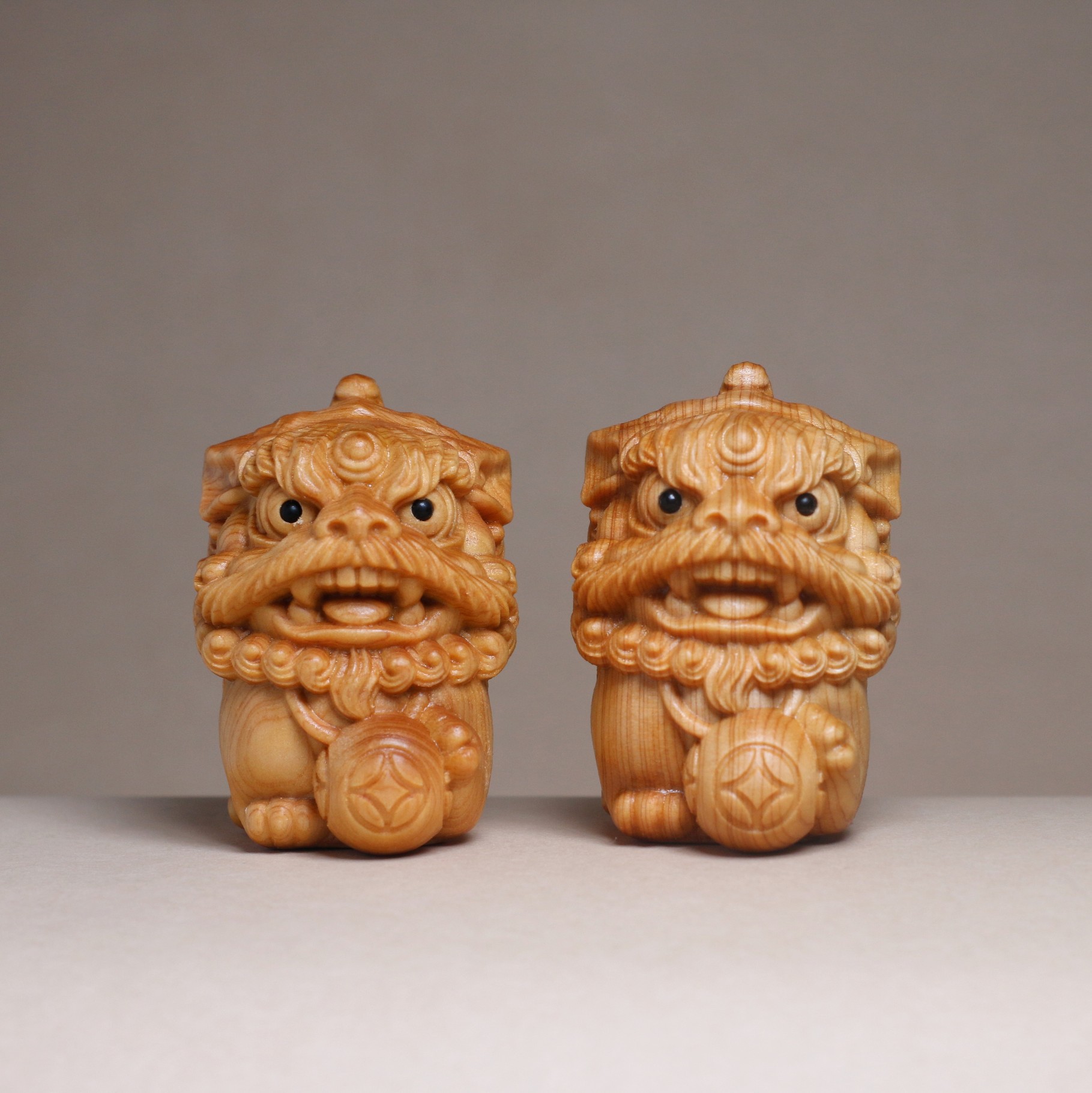 太行シダ無垢材彫刻テディドッグハンドルピース車の装飾品ラッキードッグハンドルペンダントテディ家族ポートレート