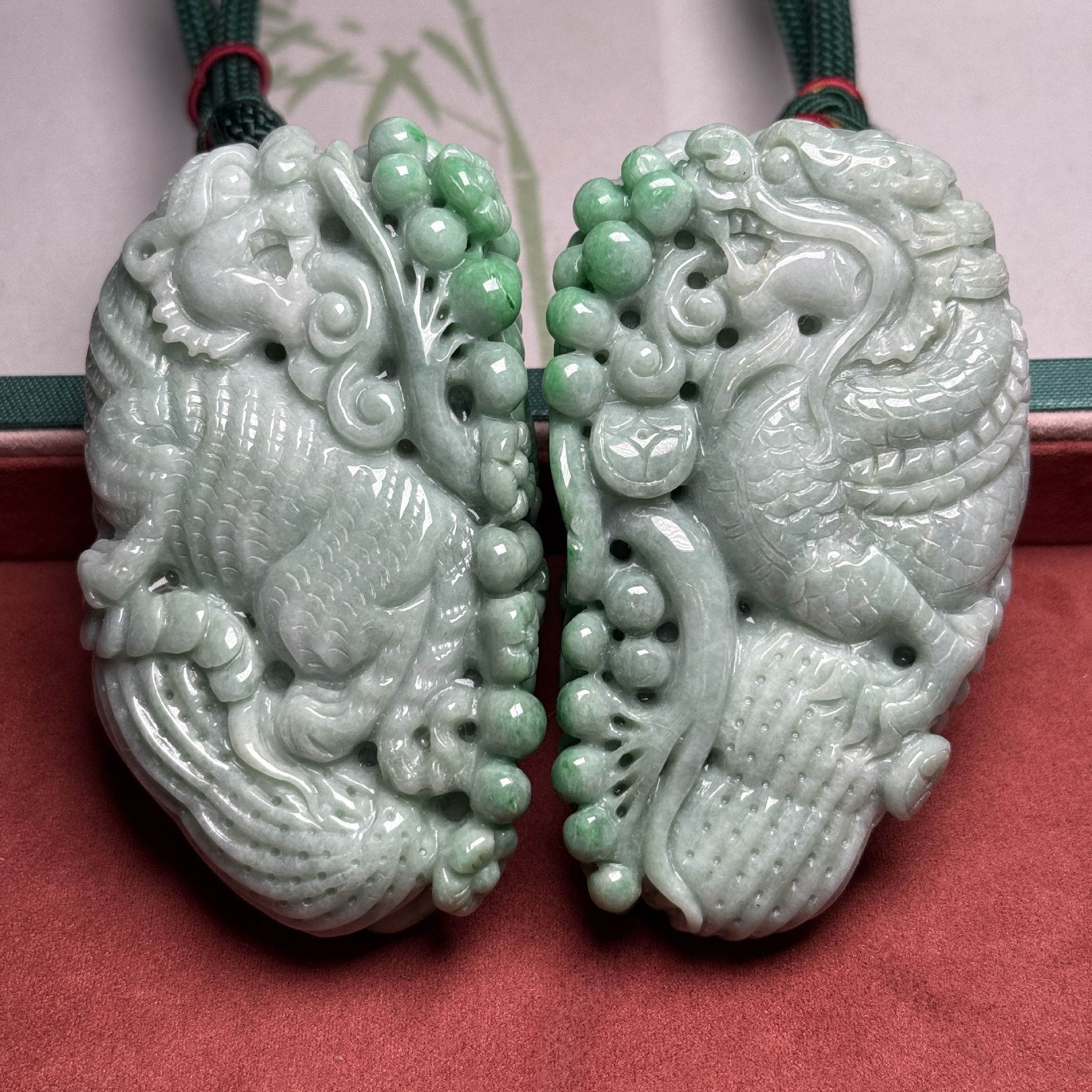 辰年干支ペア翡翠A級天然大ペンダントビルマ翡翠ジュエリーライブハンドピース