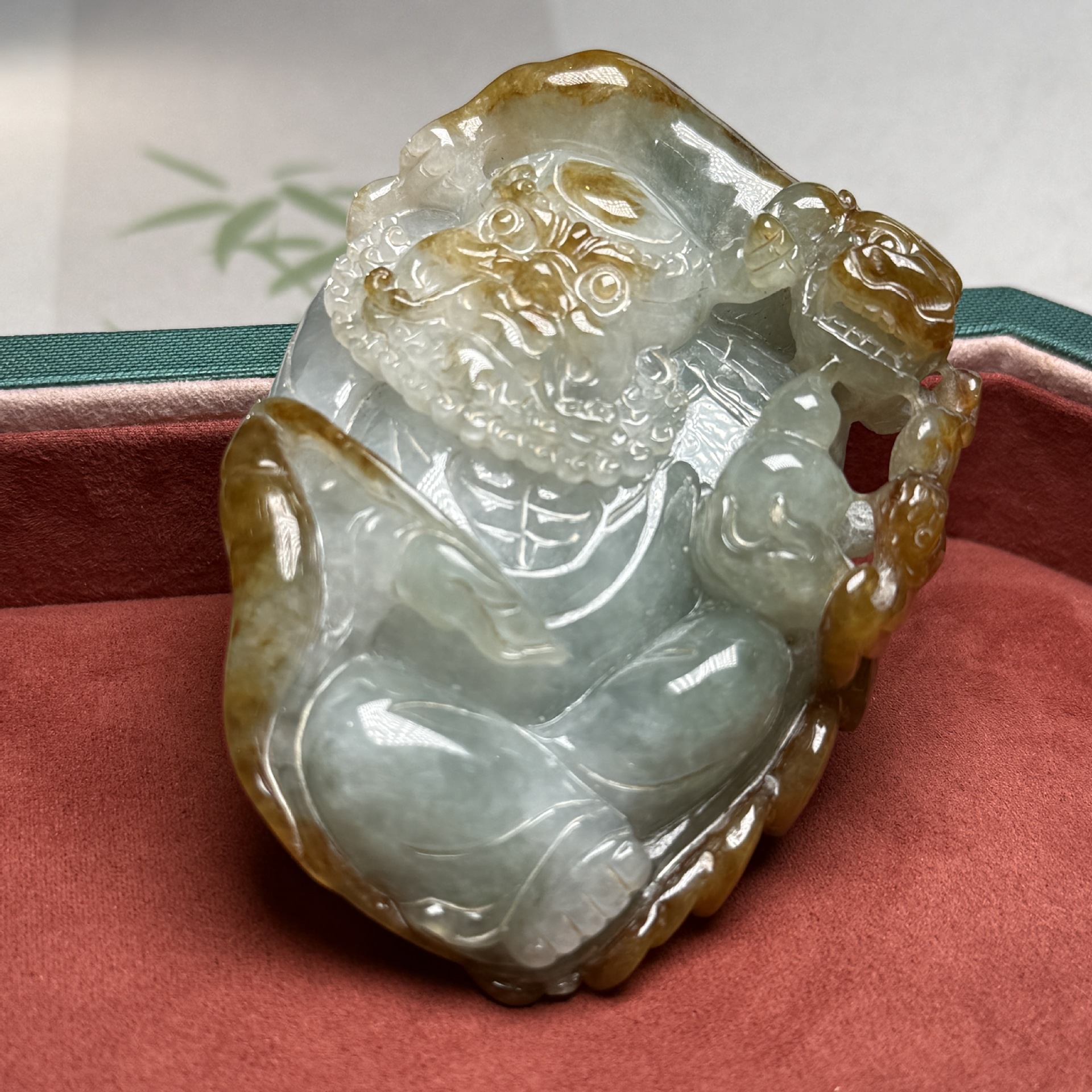 收藏冰黄达摩手把件翡翠a类天然大挂坠缅甸翡翠送礼饰品直播手玩