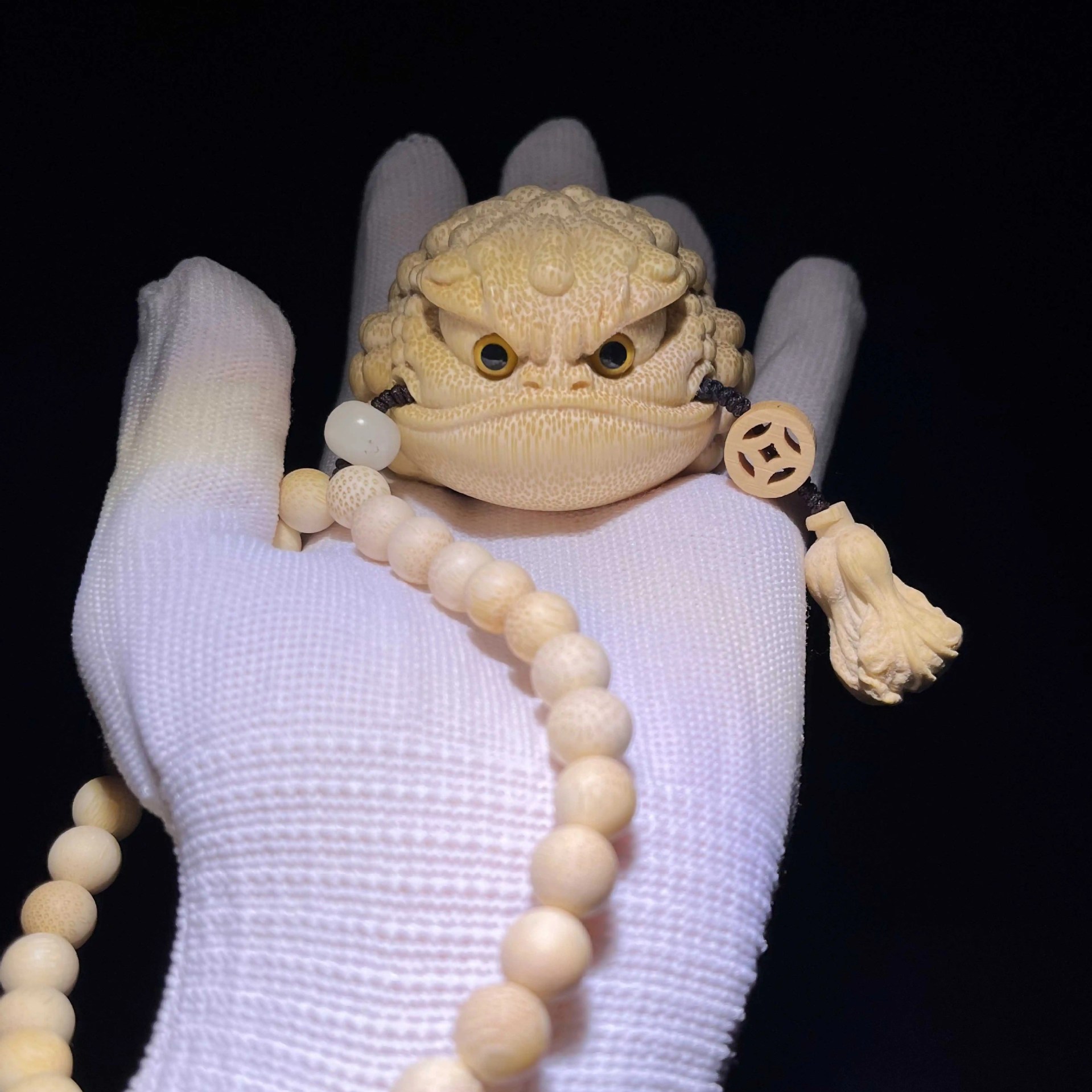 無垢竹彫刻 5.5 三脚悪事金蟾文具ハンドピース金蟾竹彫刻文具竹高密度古材