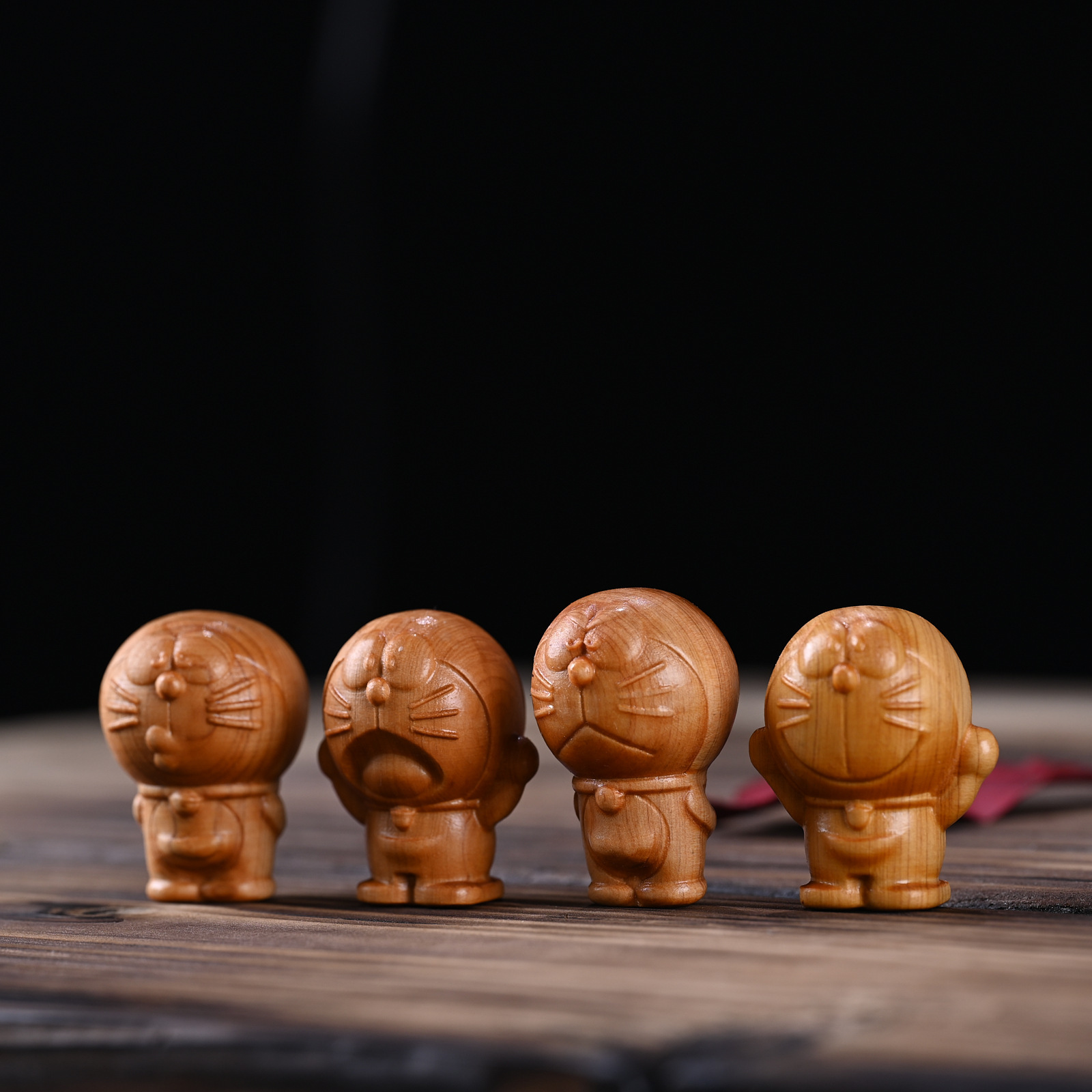 シダーウッド彫刻ジングル猫ドラえもん木製文具ハンドピースハローキティ猫子供の漫画のおもちゃ