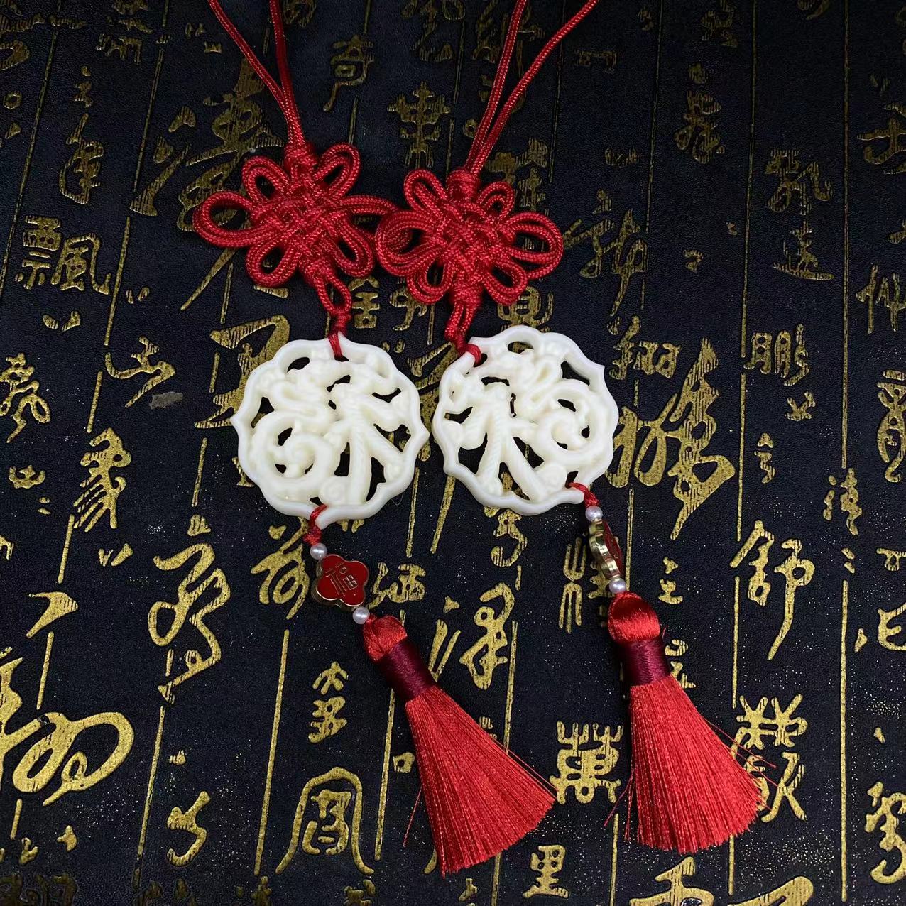 象牙の実の彫刻の福の字の中国の結びの平安はDIYの手作りの車の車の装飾品の携帯電話の部品を掛けます。