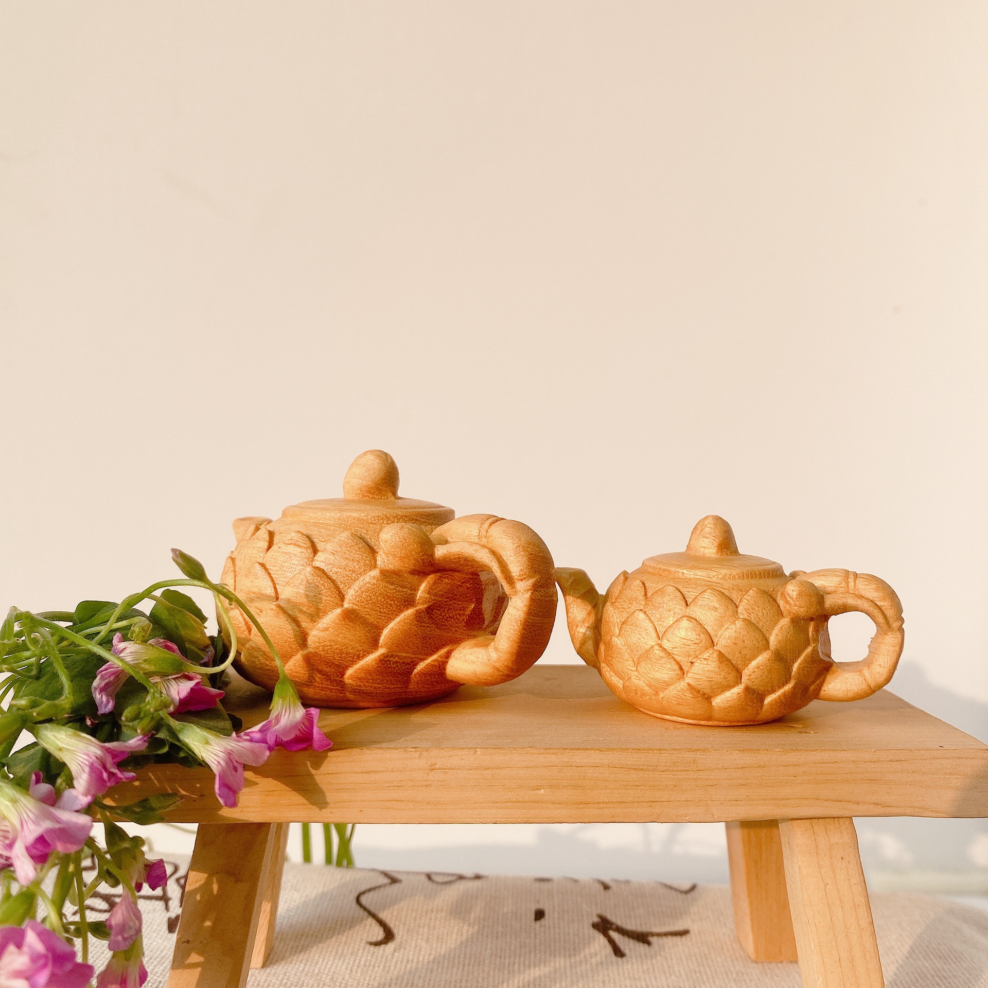 黄金檀木彫り蓮花壺文は、壺のハンドルをデスクトップ展示品ティーポットのストラップにします。