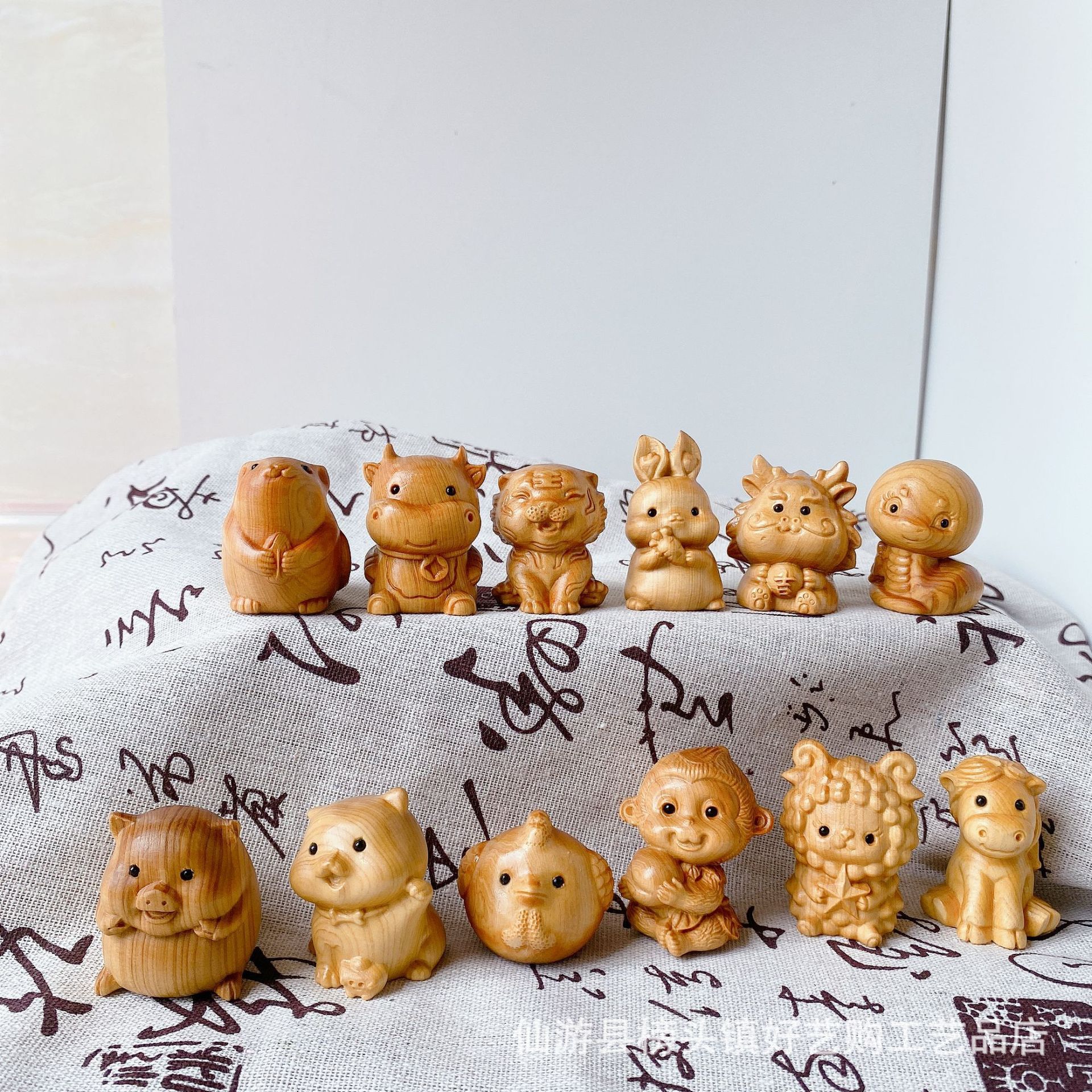 崖柏工芸品木彫り十二生肖の取っ手のフルセットの掛け物です。