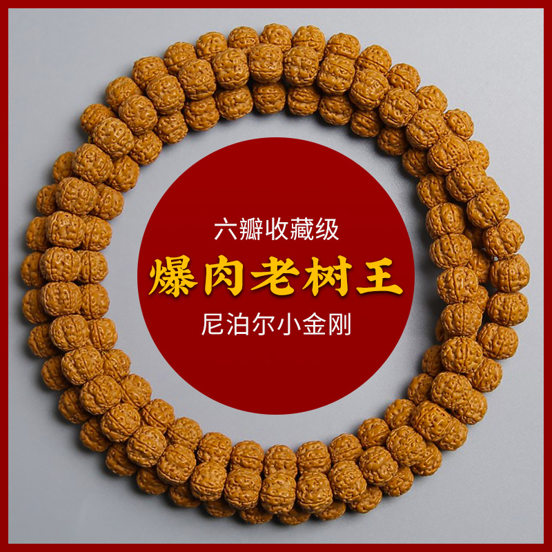 ネパールの小金剛菩提手串爆肉双龍紋五六弁文は仏珠のブレスレットの男女の金108粒を遊びます。