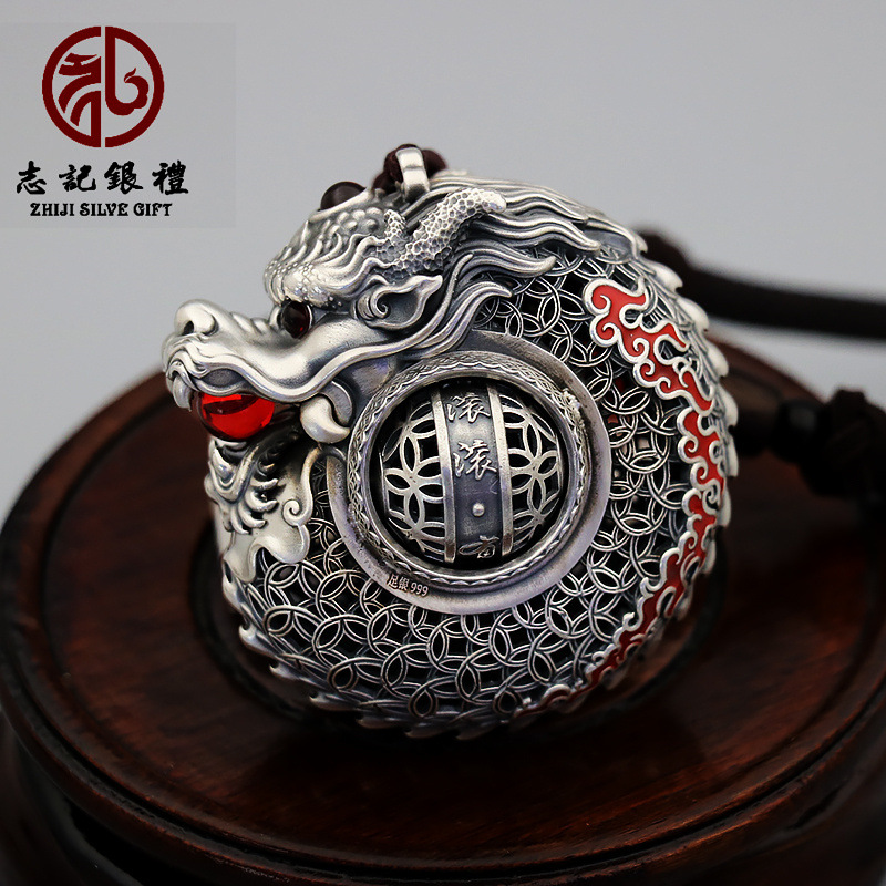 純銀盤龍財龍車載ハンドル部品足銀999手はボールを持っています。