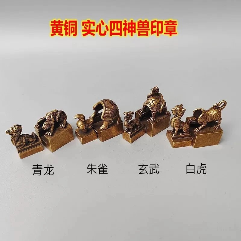 真鍮四獣青龍白虎朱雀玄武印鑑子母銅印鑑角型ミニ小印鑑骨董雑