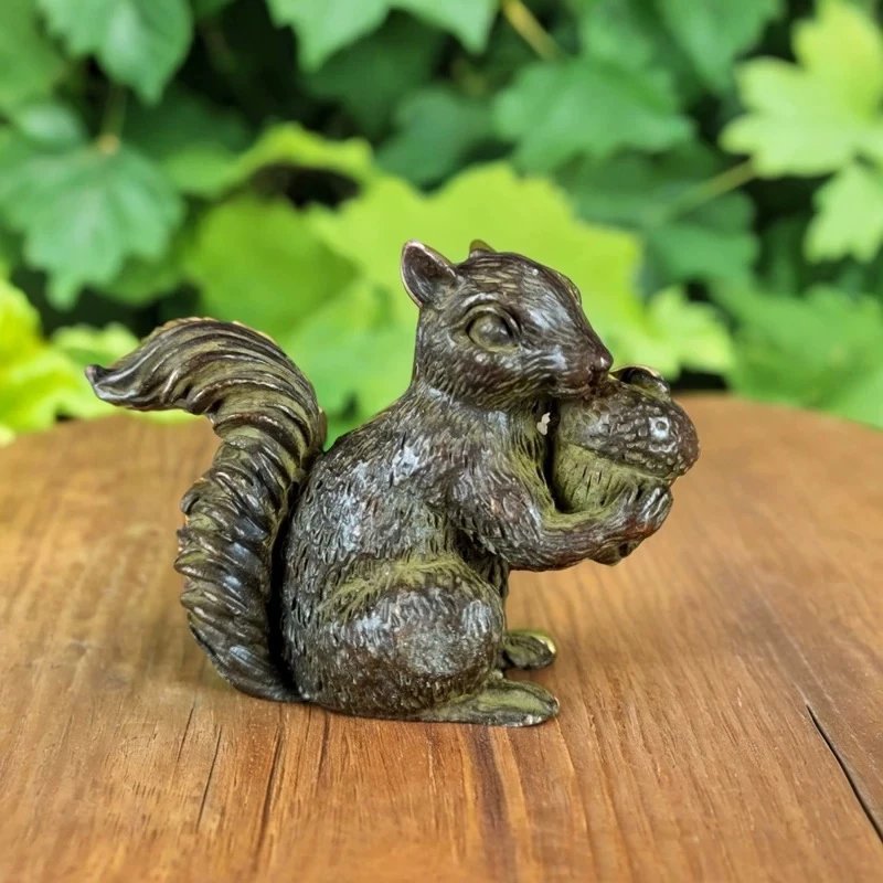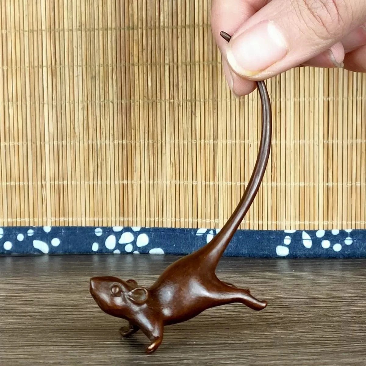 アンティークの合金のリスの小さい置物の中実の小さい動物のデスクトップのリスのハンドルの件のレトロな家庭の装飾の置物