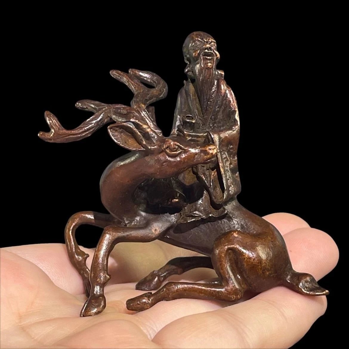 骨董コレクション銅寿星公香挿寿星騎臥鹿檀香炉線香家庭金属オフィス装飾迎賓