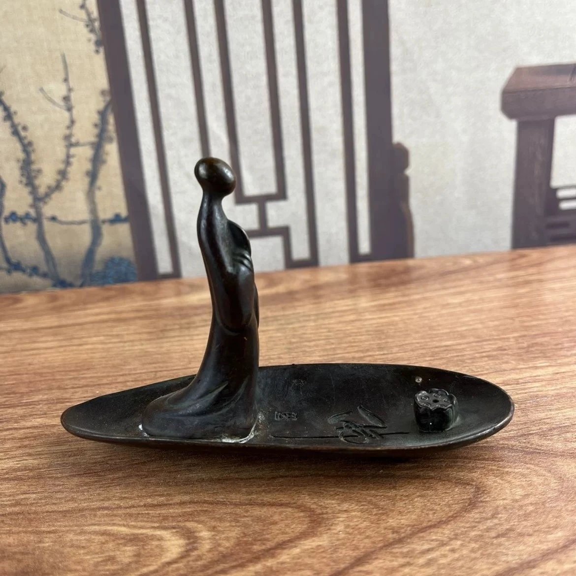 禅仏香托置物中国式古典禅意置物一舟線香托茶道茶器金属鋳造古銅色
