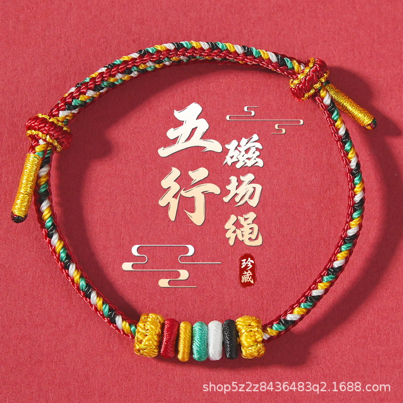 五行手串手編み手縄金木水火土ブレスレット本命年五路財神国風中国式赤い縄