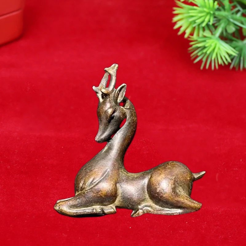 古游中実心臥鹿置物金属レトロ茶寵小鹿鎮紙文房用品家庭装飾デスクトップ置物