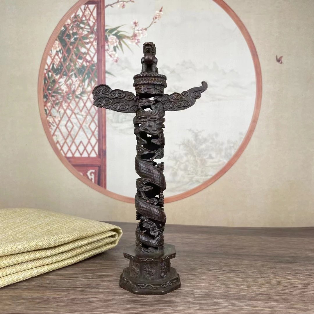 レトロな華の時計の置物の骨董華の時計の柱の置物の中華の柱の竜の柱の家庭の金属の事務室の装飾の工芸品