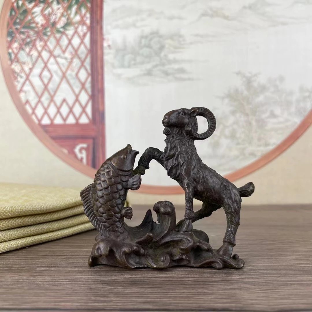 骨董の合金の置物の吉祥の如意は毎年余の置物の吉祥の如意の生肖の羊の茶の寵愛の家の飾り物があります。
